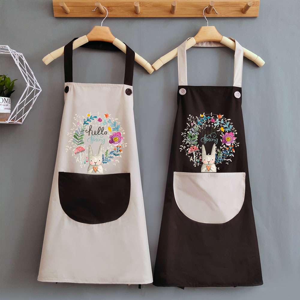 うさぎモチーフがかわいい おしゃれ保育士エプロン 花柄フリルデザイン