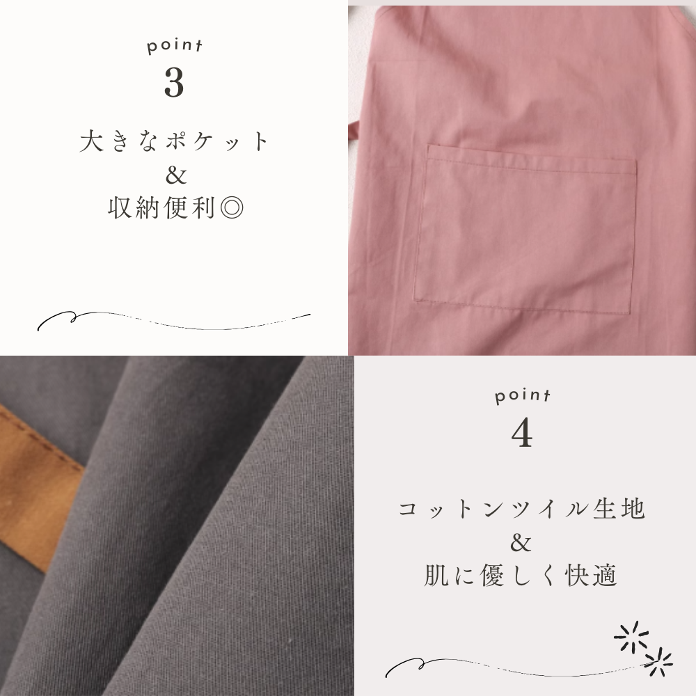 実用的な大きなポケット付きで、日々の保育活動に最適。