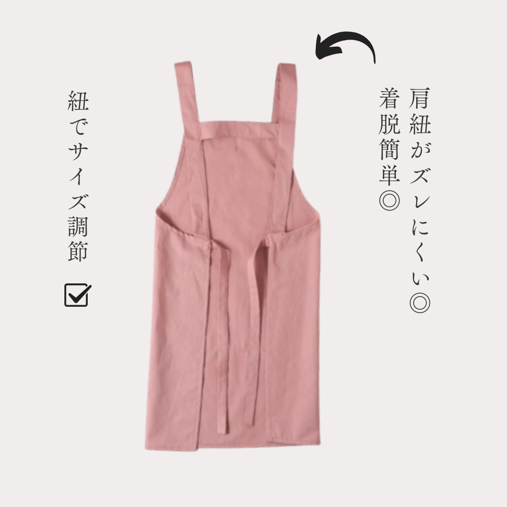 調節可能な肩ひもで着脱が簡単、体を動かす保育現場での作業性も考慮したデザインです。