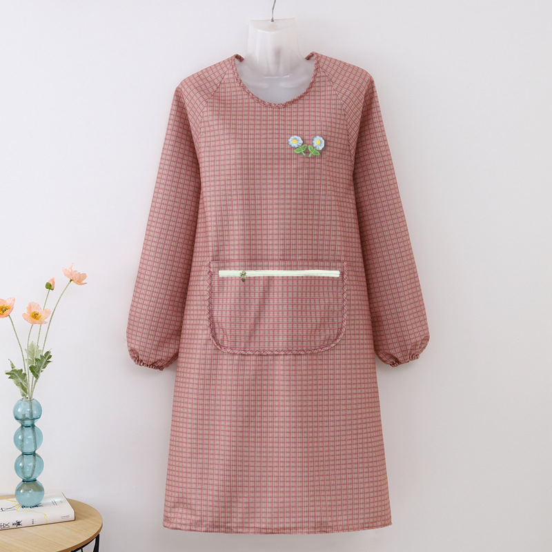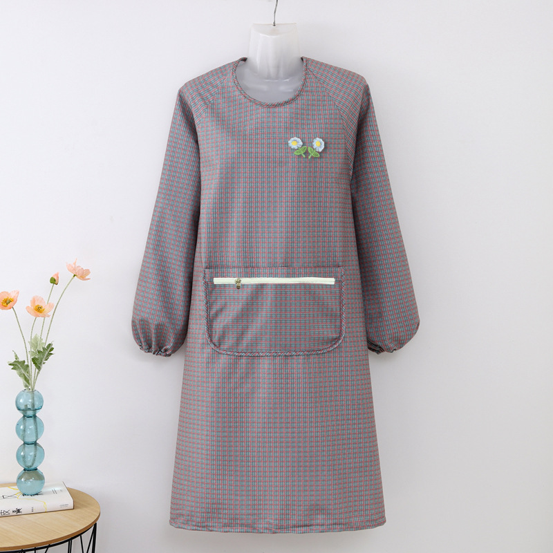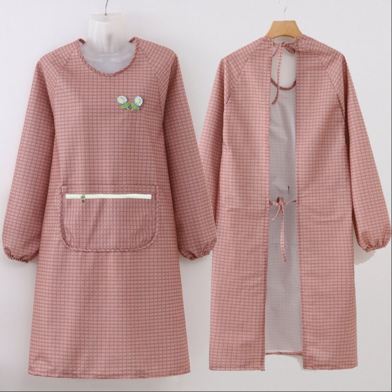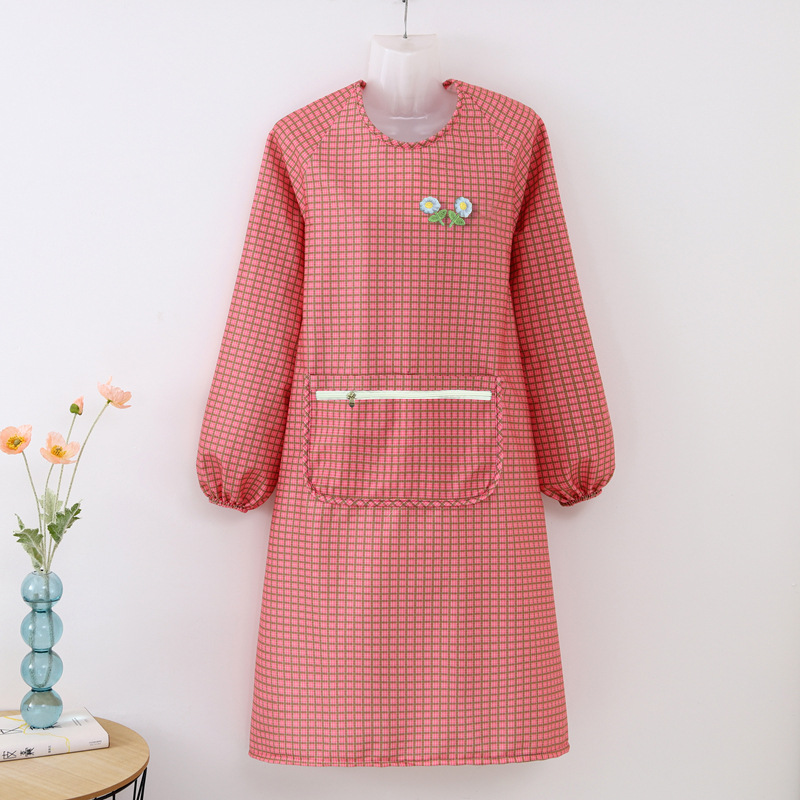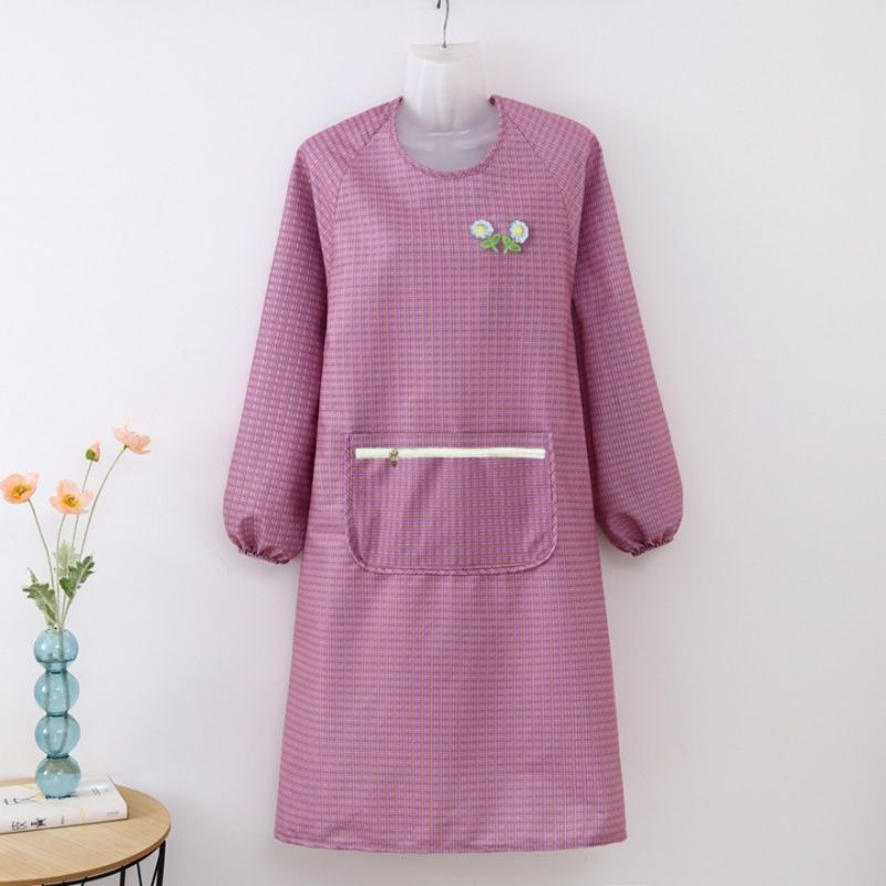 長袖エプロンなので腕まわりをしっかりカバーし、汚れや水はねから大切な衣服を守ります。