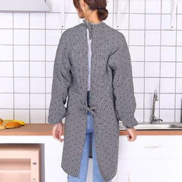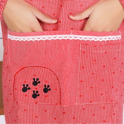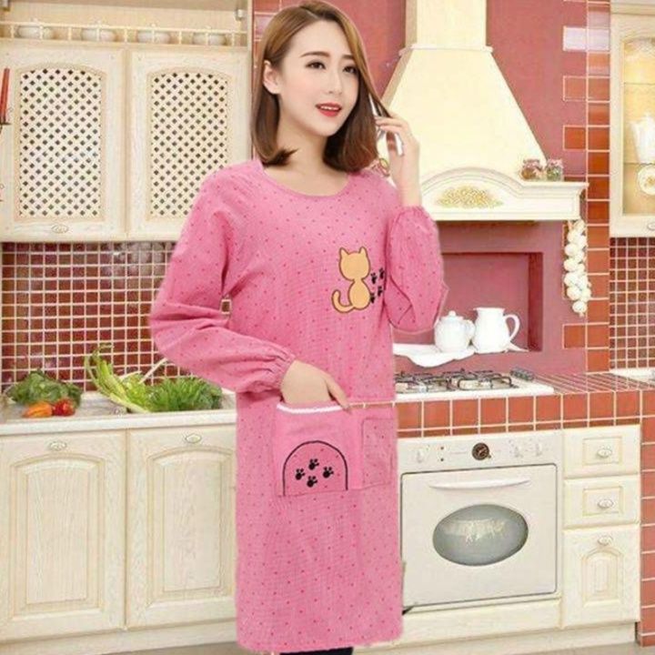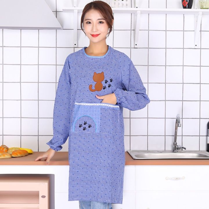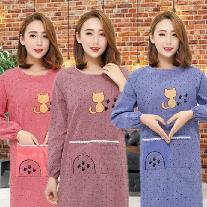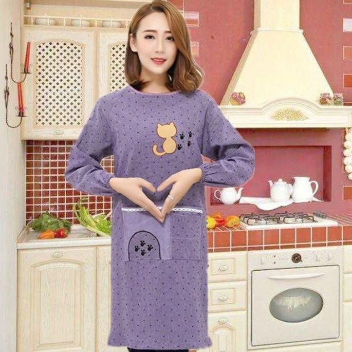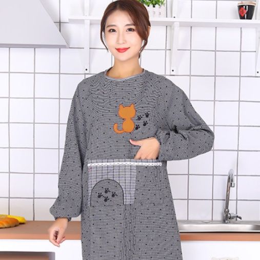 保育士エプロンとして最適な、かわいい猫の刺繍が胸元にあしらわれた長袖スモックです。