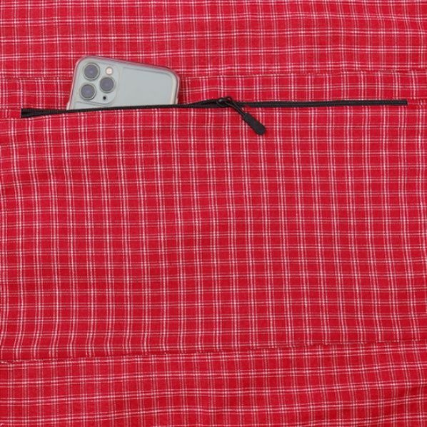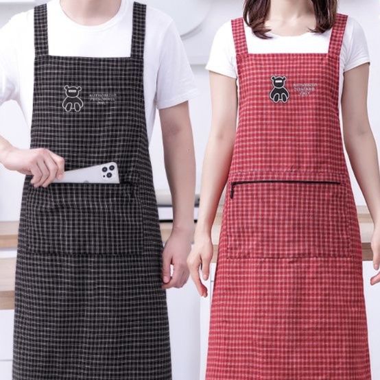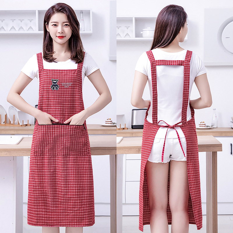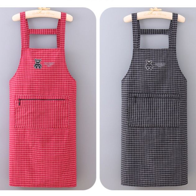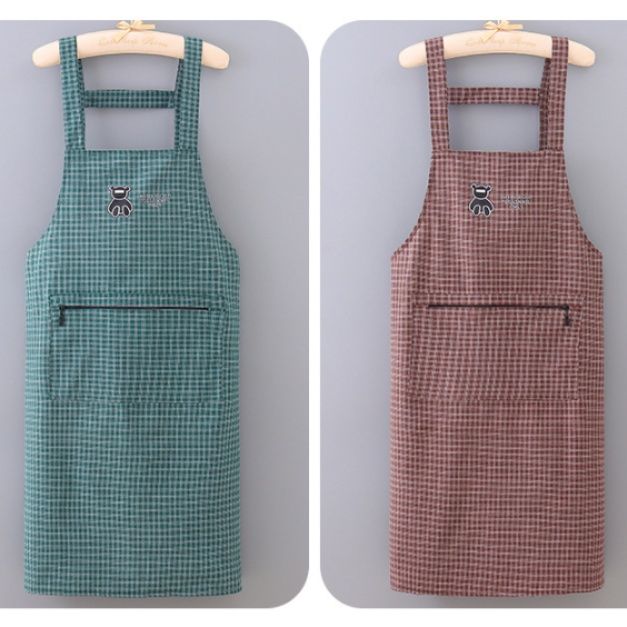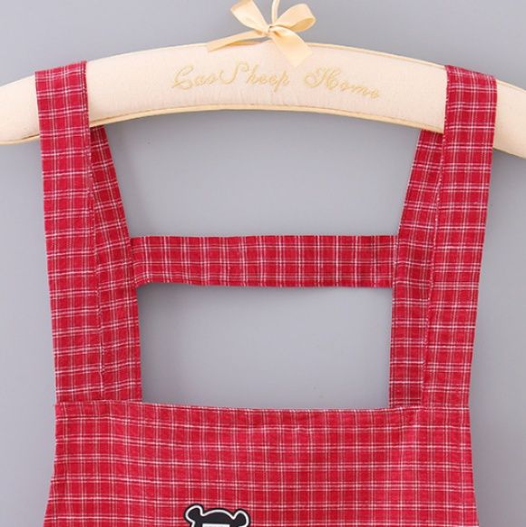 保育士エプロンとして最適なおしゃれな格子柄デザインの加長型エプロンです。
