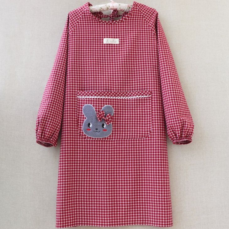 可愛らしいうさぎの刺繍がアクセントになった保育士エプロンです。