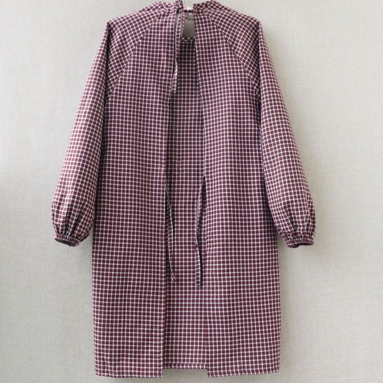 チェック柄のスモックは動きやすさと機能性を兼ね備え、長袖デザインで季節を問わず快適にお仕事ができます。