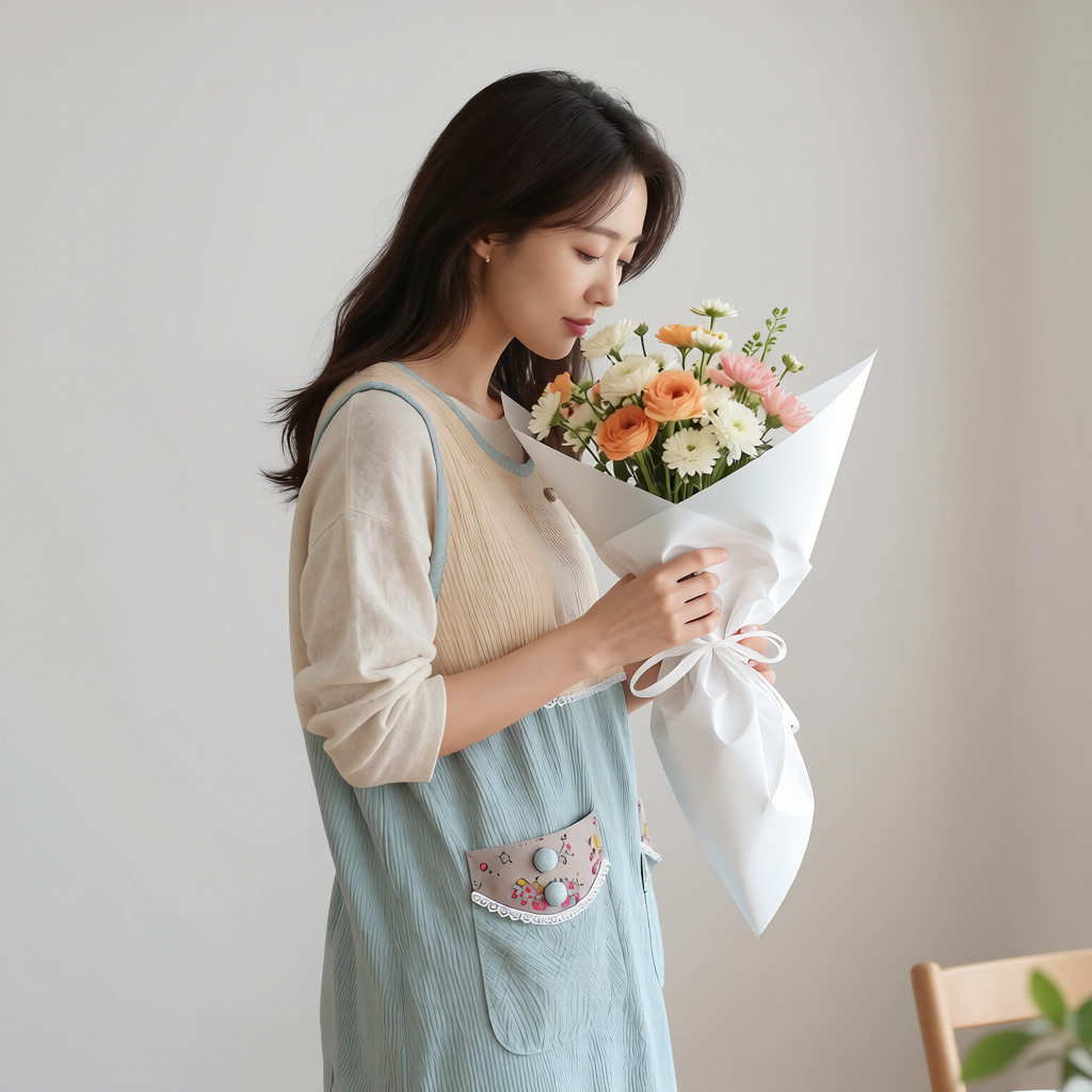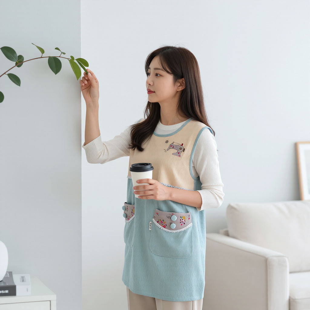 かわいい刺繍ワンポイントが胸元とポケットを飾る保育士エプロンです。 柔らかな風合いの生地を使用し、動きやすさと着心地の良さを両立しました。 大きなポケットは小物の収納に便利で、保育の現場で大活躍します。 レース風のパイピングがアクセントとなり、優しい雰囲気を演出します。 毎日の保育業務を明るく楽しくしてくれる実用的なデザインです。