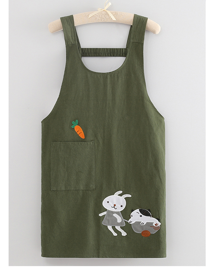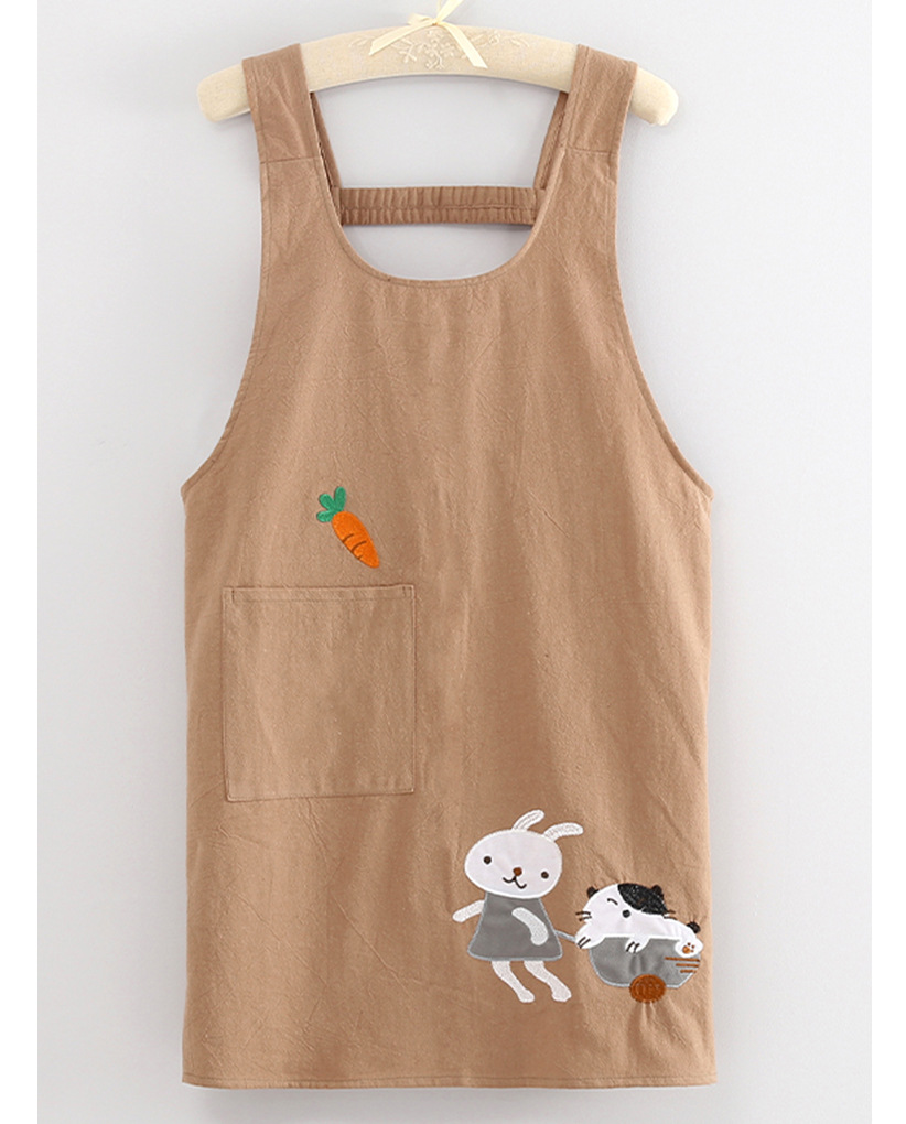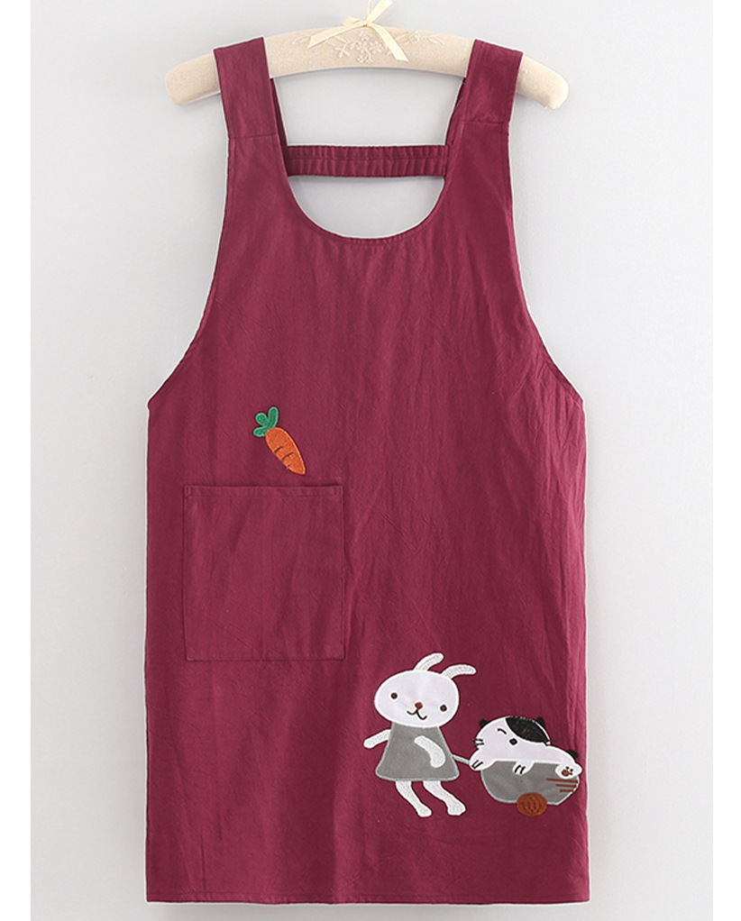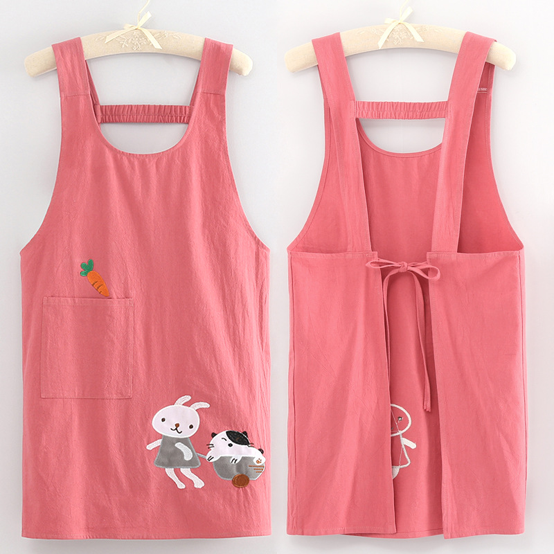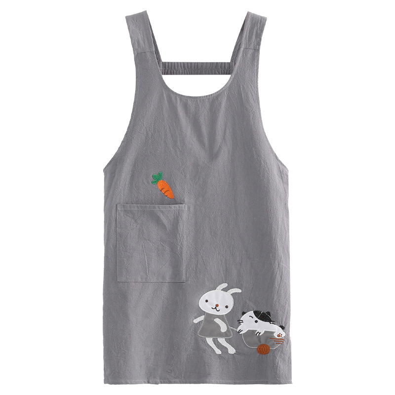 可愛らしいうさぎと猫のキャラクターが刺繍された保育士エプロンです。