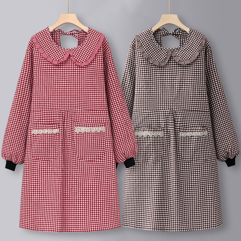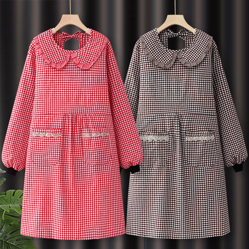 愛らしい丸襟とリボンが特徴の保育士エプロンです。 ギンガムチェック柄が優しい雰囲気を演出し、子どもたちに親しみやすい印象を与えます。 前面には便利な大きめポケットが二つ付いており、ハンカチや小物の収納に最適です。 長袖のスモックタイプなので、季節を問わず幅広く活用できます。 後ろはリボン結びで着脱も簡単、動きやすさと可愛らしさを兼ね備えた実用的なデザインです。