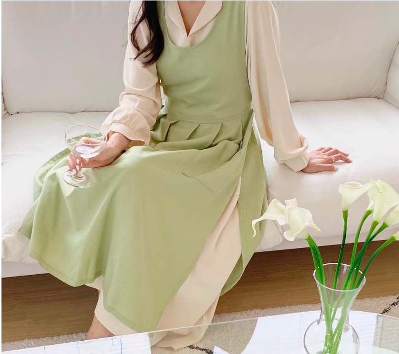保育現場での活動も家事も料理もおしゃれに楽しめる、温かみのある韓国風ホームスタイルの一着です。