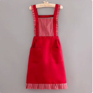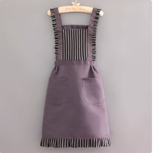 上品なストライプ柄が特徴的なエプロンワンピースです。