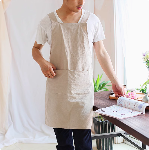 白シャツに重ねるだけでおしゃれな雰囲気に変わる保育士向けH型エプロン。